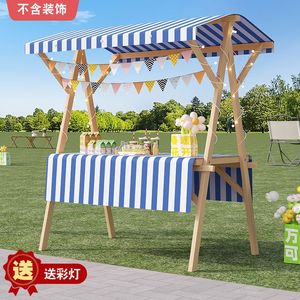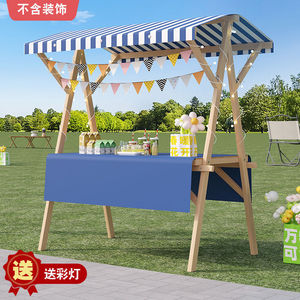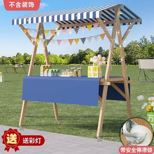120*60*200-青と白の天井布 + 青のテーブルクロス、無料のランタン