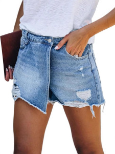 2025 ヨーロッパとアメリカの新しい夏の売れ筋カジュアル気質ウォッシュリップドパンツスカートライトブルー女性デニム
