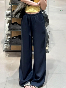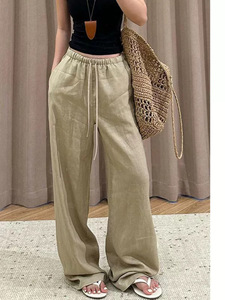 chao级推荐!老钱卡其色天丝亚麻裤子女夏季高腰抽绳垂感阔腿裤