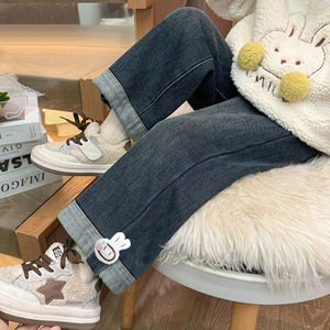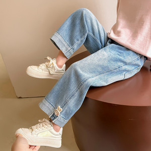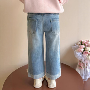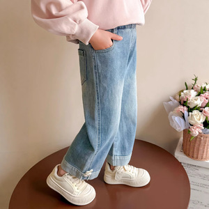 女童裤子秋装2025新款中小童直筒裤女孩洋气牛仔裤儿童阔腿裤秋款