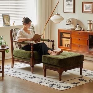 アメリカンスタイル無垢材ソファリビングルームレジャーチェアファブリックフレンチアッシュシングルソファチェア怠惰なレトロタイガー