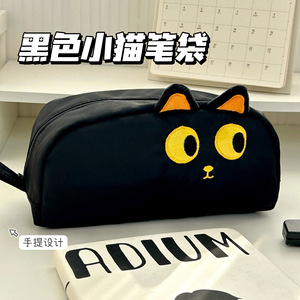 漫画の小さな黒猫ハンドル鉛筆バッグニッチ大容量文具箱学生高価値かわいい女の子化粧品バッグ