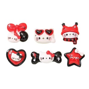 漫画黒と赤の猫樹脂アクセサリー DIY クリーム接着剤ヘアピン携帯電話ケース電気自動車水カップ靴バックル装飾
