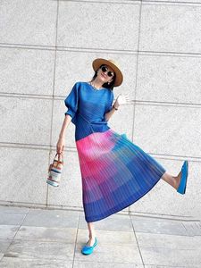 夏日恋恋清新气质褶皱百褶裙度假风显瘦开叉凉凉冰丝遛弯半身裙