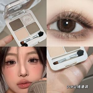 黑胶唱片四色眼影盘哑光珠光闪粉裸妆大地色学生平价彩妆初学者