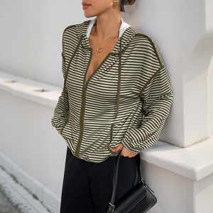 ヨーロッパとアメリカの貿易 2025 新しい秋のクロスボーダー通勤デート韓国スタイルの怠惰なフード付きストライプの女性のカジュアルジャケット