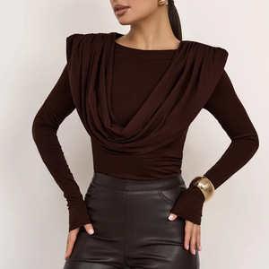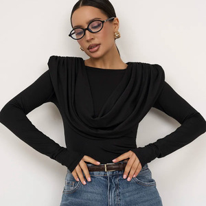 秋の新作ラウンドネックスリム長袖レディースTシャツデザイン気質ファッショナブルなヨーロッパとアメリカンスタイル2025国境を越えた通勤