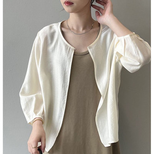 女性用ワンボタン日焼け止めシャツ、春夏韓国風ゆったり万能七分袖トップス、薄手ラウンドネックカーディガンジャケット