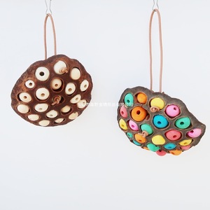 オウム鳥のおもちゃ乾燥蓮のつぼみ噛み串木製ビーズ革ロープ歯が生える用品メーカー卸売