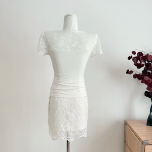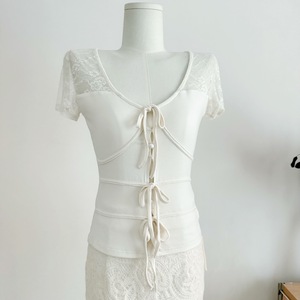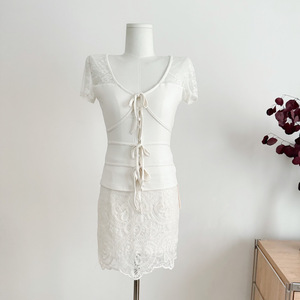 ローズリリーフスタイル韓国風ストラップレースウエストエレガントピュアデューティーVネック半袖レディース
