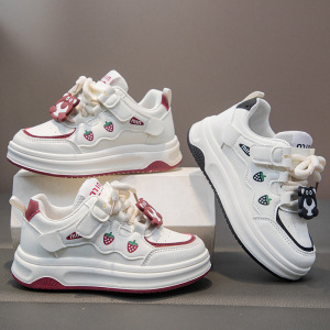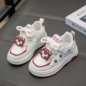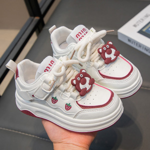 草莓熊女童运动鞋皮面防水春秋新款儿童板鞋中大童男休闲跑步鞋子