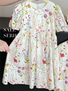 チュチュ象女の子ドレス 2025 夏ピュアコットンバブル半袖花妖精親子レディーススカート