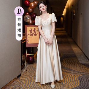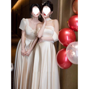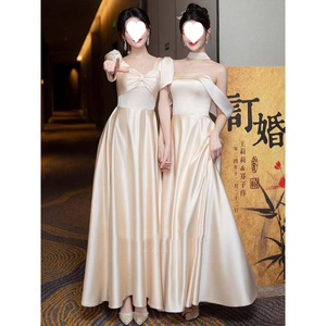 シャンパンサテンのブライズメイドドレスシスタードレス2025新しい婚約ドレス女性用、ハイエンドで美しい、日常着として着用できます