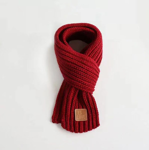 冬季男女宝宝保暖加厚韩版针织围巾儿童护颈防风纯色皮标围脖批发