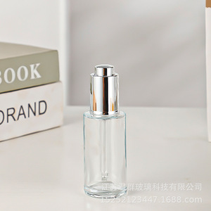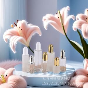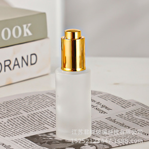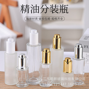 现货透明玻璃精油分装瓶30ml滴管瓶蒙砂按压乳液瓶化妆品瓶子套装