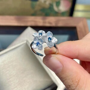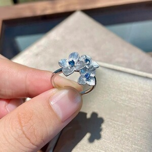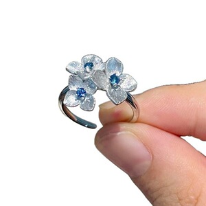 シンプルなブラッシュブルージルコンアジサイリング女性のニッチデザインハイエンド人差し指リングライト高級新しい中国風リング