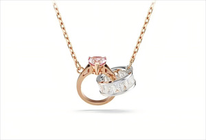 ブラック ダブル リング インターロッキング ダイヤモンド ネックレス