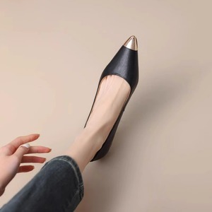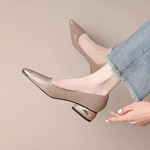 女性用の美しいフレンチスタイルのポインテッドトゥメタルパンプスのシープスキンバージョン、2025年夏の新しいスタイルのスカート付き太いヒールのイブニングシューズ