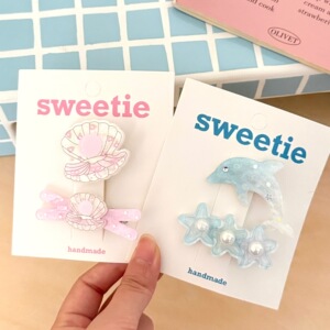 夏のオーシャンシリーズアクリルカモノハシクリップ甘い女の子ヘアクリップパールシェル前髪クリップヘアアクセサリー卸売