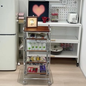 中古トロリーリビングルームスナック収納ラック床置きモバイルキッチン果物と野菜の収納多機能ホームダイニングキャビネット