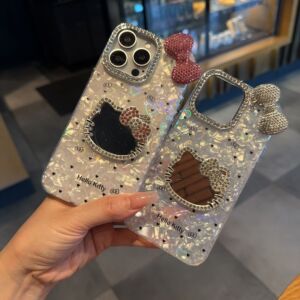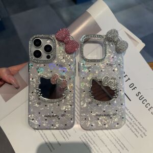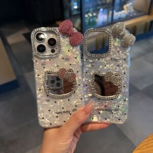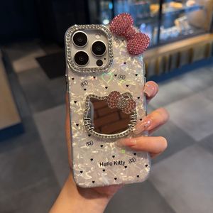 ドットダイヤモンドフレーム シェル柄 KT猫ミラー付き iPhone 17 Pro Max用ケース iP15新作 14/13対応