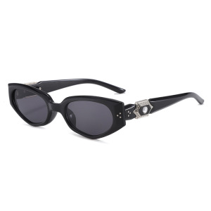 2025 新しいレトロな黒の小さなフレームのキャットアイ サングラス、女性用、小さな高級感のあるヨーロッパとアメリカの抗 UV サングラス