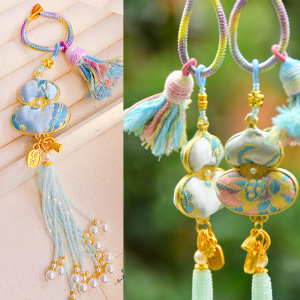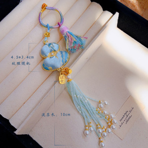 無形文化遺産手作り宋錦ひょうたんタッセルバッグペンダント車のキーホルダー携帯電話ペンダント新中国風レトロプレス襟