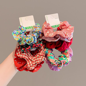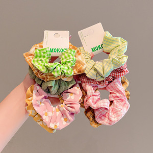 新款儿童猪大肠发圈可爱肥肠头绳韩版布料格子发圈大肠圈套装发饰