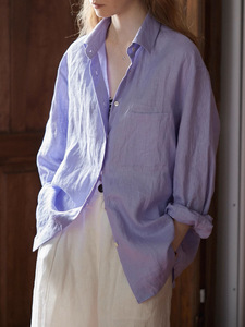 2025SS ハイエンド100ナチュラルサンドウォッシュリネンタロパープル長袖シャツブラウス