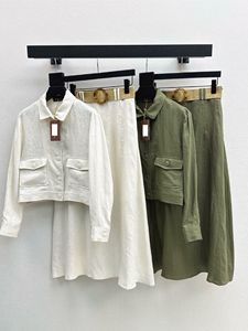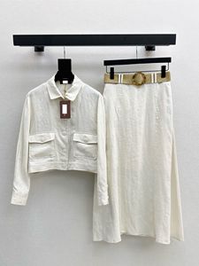 深圳南油25春夏高端女装小短款外套+半裙亚麻极简老钱风套装