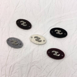 植绒米卡龙彩色 合金 有眼 纽扣标牌 字母 椭圆扣 针织衣 标吊牌