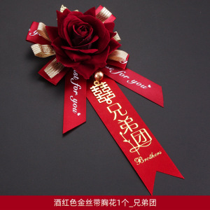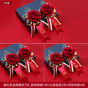 金珠胸花酒红七对(新郎新娘1对+父亲母亲2对+伴郎伴娘4对)