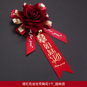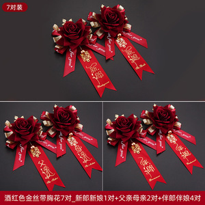 丝带胸花酒红七对(新郎新娘1对+父亲母亲2对+伴郎伴娘4对)