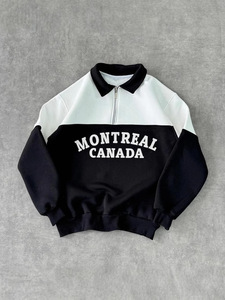 Y2K シンプル通勤スタイルポロカラーメンズステッチ刺繍パターンジッパーデザインファッションルーズトップ