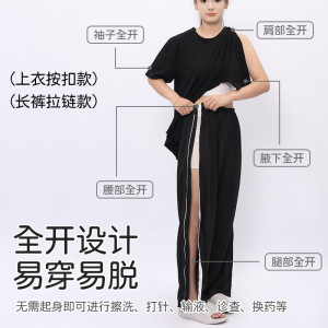 骨折患者、寝たきり高齢者、病院用ガウン、パジャマ、夏用スナップボタン半袖ズボン、通気性の良い着脱が簡単な看護服