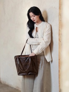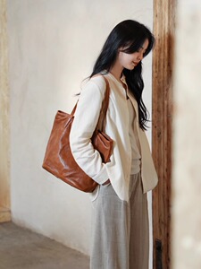 裘真植鞣头层牛皮遇托特包女复古休闲百搭腋下单肩大容量通勤包