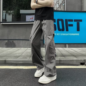 ベージュのカットオフアイスシルク速乾パンツ男の子夏薄いスモールソールオーバーオール日焼け止め空挺部隊カジュアルパンツ