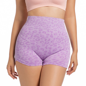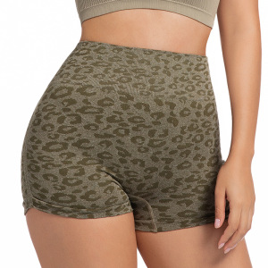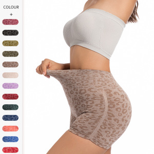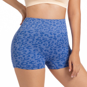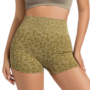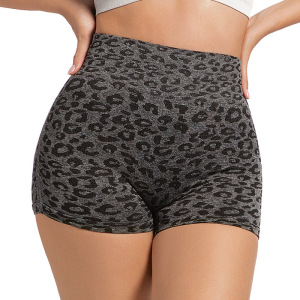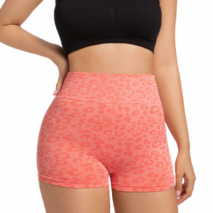 国境を越えた売れ筋のヨーロッパとアメリカの夏のハイウエストおなかコントロールスポーツショーツヒョウ柄ピーチショーツランニングフィットネスヨガショーツ
