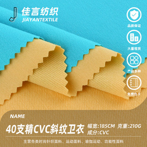 40 カウント CVC ツイルスウェットシャツテリー生地秋と冬のポリエステル綿の女性のスウェットシャツスーツパンツニット生地