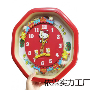 小火车玩具挂钟质量时钟创意玩具猫挂钟可爱客厅塑料