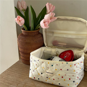オリジナル化粧品バッグ女性の新しいポータブル大容量ガーリーハート漫画ドット化粧品収納袋トイレタリーバッグ