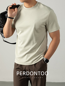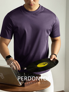 80S 冷感液体アンモニアシルケットコットン半袖 Tシャツメンズ 2025 夏ライト高級ネットバージョンパープルクールカジュアルトップス