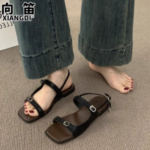 超软底真皮凉鞋女款2025新款夏季配裙子露趾平底凉鞋沙滩罗马女鞋