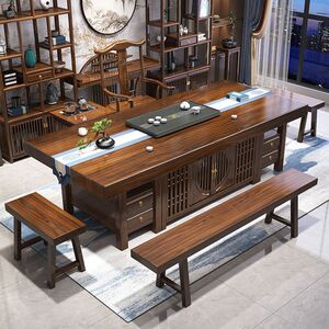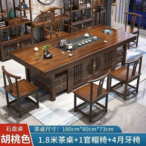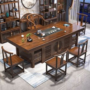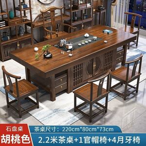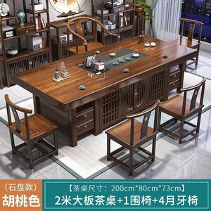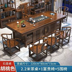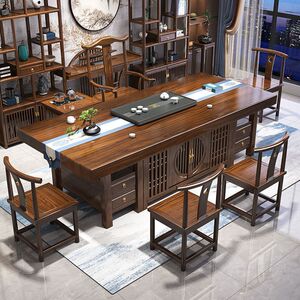 無垢材の大型ボードティーテーブルと椅子の組み合わせ、新しい中国風のオフィスコーヒーテーブル、禅ティーテーブル、ティーテーブルのセット