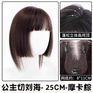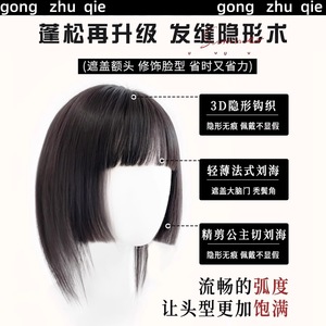 女性用プリンセスカット前髪ウィッグ、ふわふわで自然な額、跡のない前髪