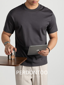 240 グラム冷感液体アンモニアシルケットコットン半袖 Tシャツメンズ夏ライト高級クール通気性ソリッドカラーカジュアルトップ薄型