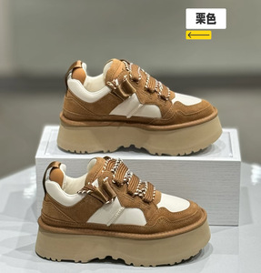 2025 新ファッションメルカジュアルシューズ厚底高さ増加お父さん靴女性の本革通気性多用途スポーツシューズレースアップ