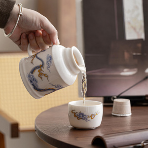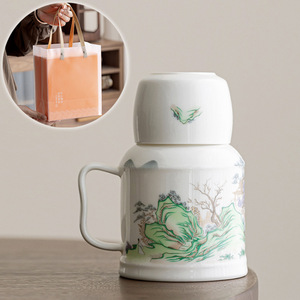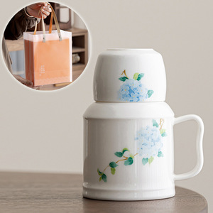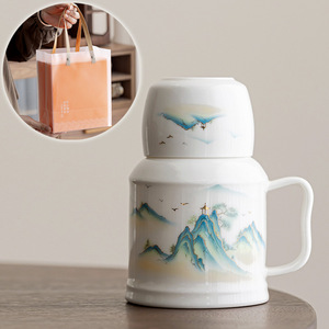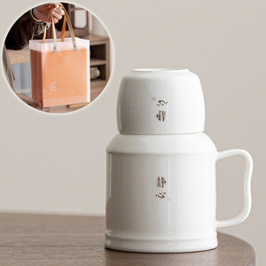 中国風の小さな魔法瓶、ティーカップ付きティーポット、セラミック魔法瓶、蓋付きの大容量魔法瓶マグカップ、オフィスウォーターカップ