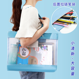 2025爆款热销透明塑料学生包便携式塑料超大容量帆布袋时尚网纱袋