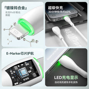 液体ソフト接着剤携帯電話データケーブル Apple 15/16 デュアル Typec Huawei Xiaomi USB 充電ケーブルライト付き